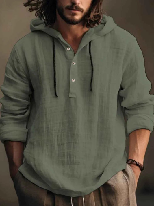 Men's Half Button Hoodie - Full Size Long Sleeve Design